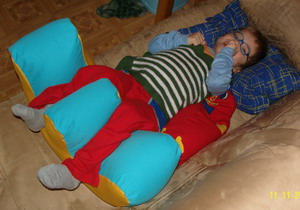 původně byla pomůcka pod stromeček, ale když tak hezky leží, tak už jí dostal teď :), konečně něco na ty naše prohnutá záda